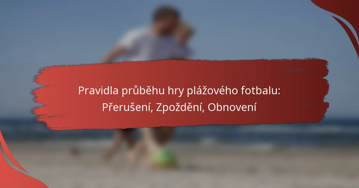 Hry plážového fotbalu mohou zažívat různé přerušení, která ovlivňují plynulost hry, což činí nezbytným, aby hráči, rozhodčí a diváci rozuměli tomu, jak jsou tyto situace řízeny. Zpoždění mohou vzniknout v důsledku zranění, povětrnostních podmínek nebo administrativních problémů, přičemž každé z nich vyžaduje specifické protokoly pro obnovení hry. Dodržování těchto pravidel zajišťuje bezpečnost a spravedlnost, což umožňuje hře pokračovat plynule po jakémkoli přerušení.